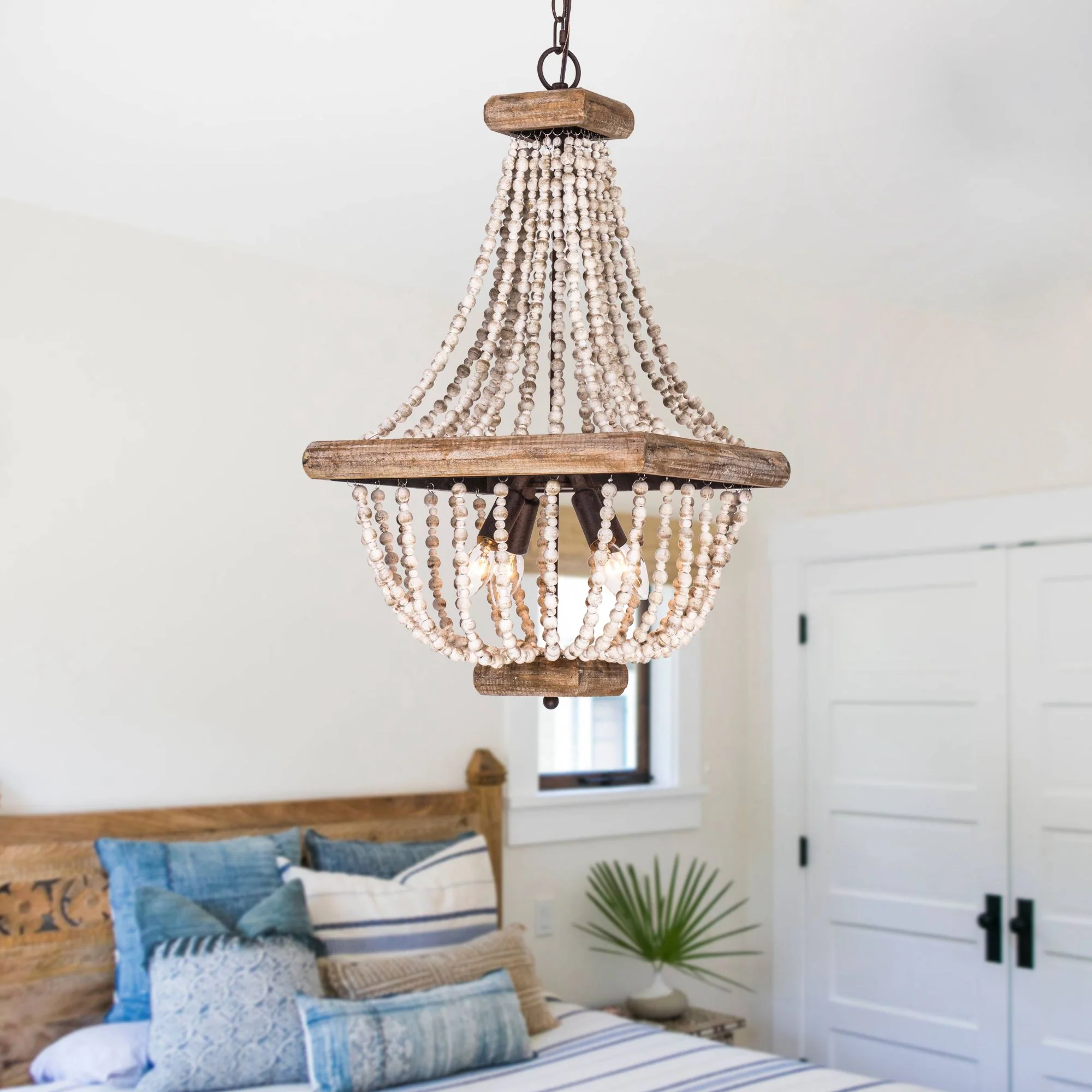 Farmhouse Beaded Basket Weathered Wood 4-Light Chandelier