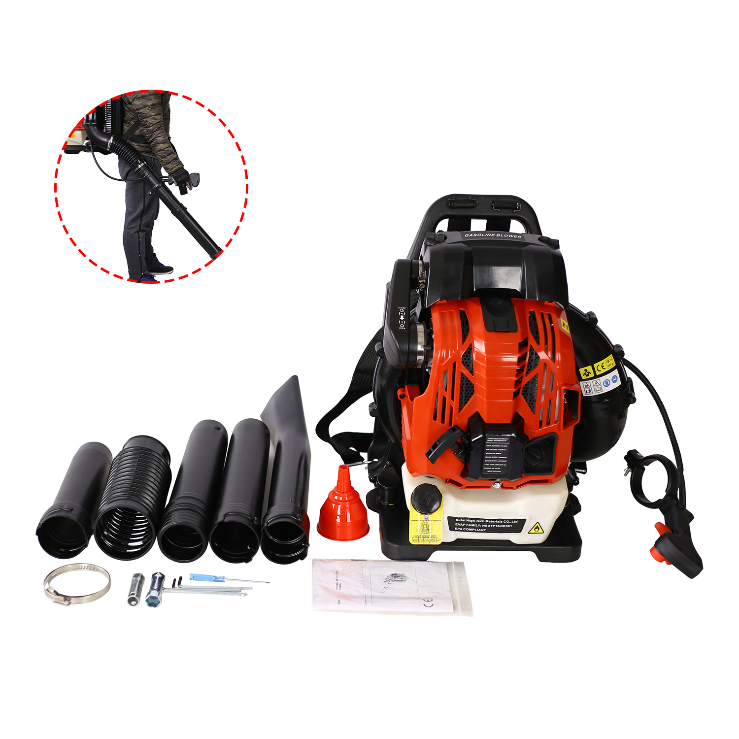 CJC 76cc Backpack Gas Leaf Blower 530 CFM 4-Stroke Engine Gas Powered, 248 MPH Handheld Leaf/Snow Blower