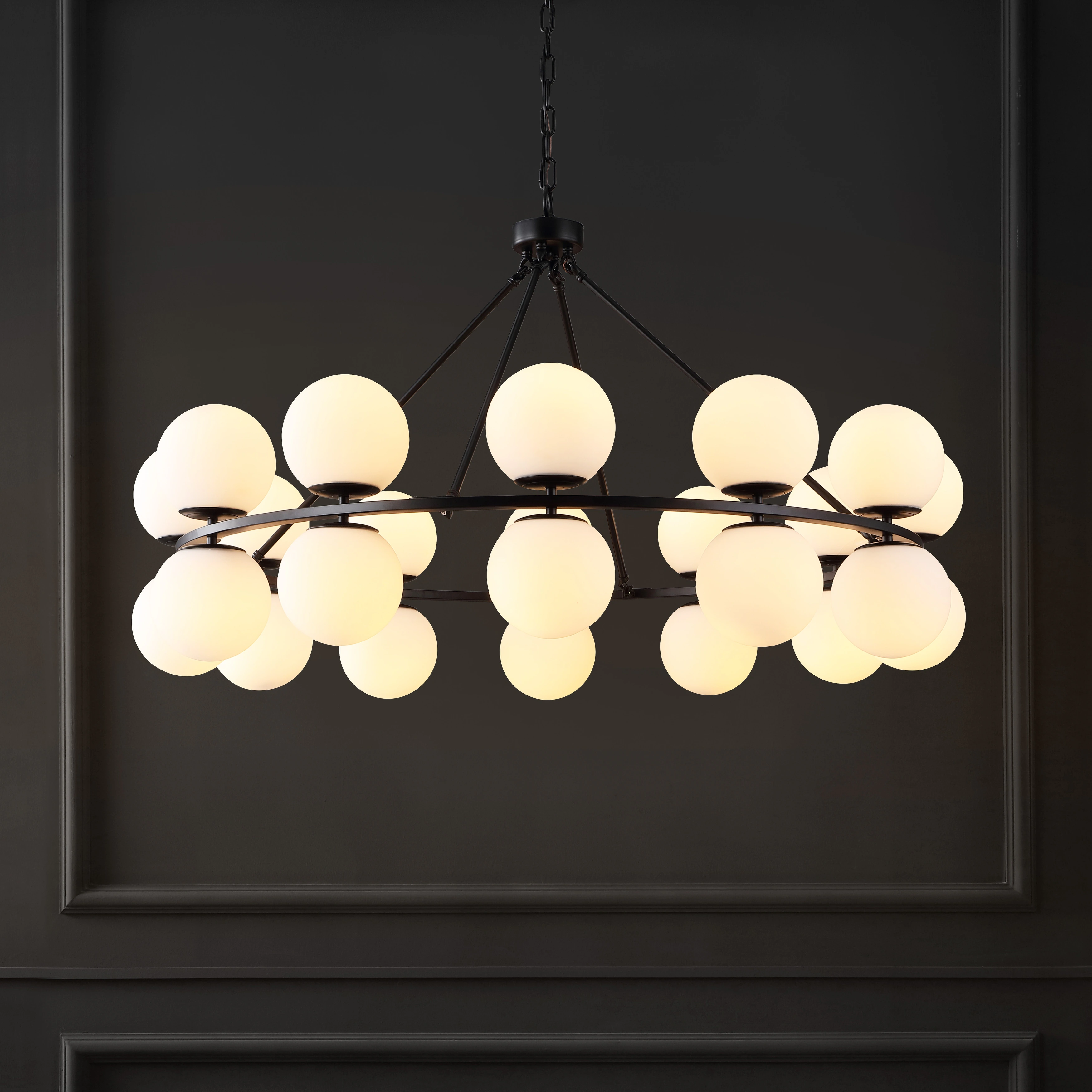 Carmona 19-Light 4-Tiered Cluster Sputnik Atomic Glass Globe Bubble Chandelier