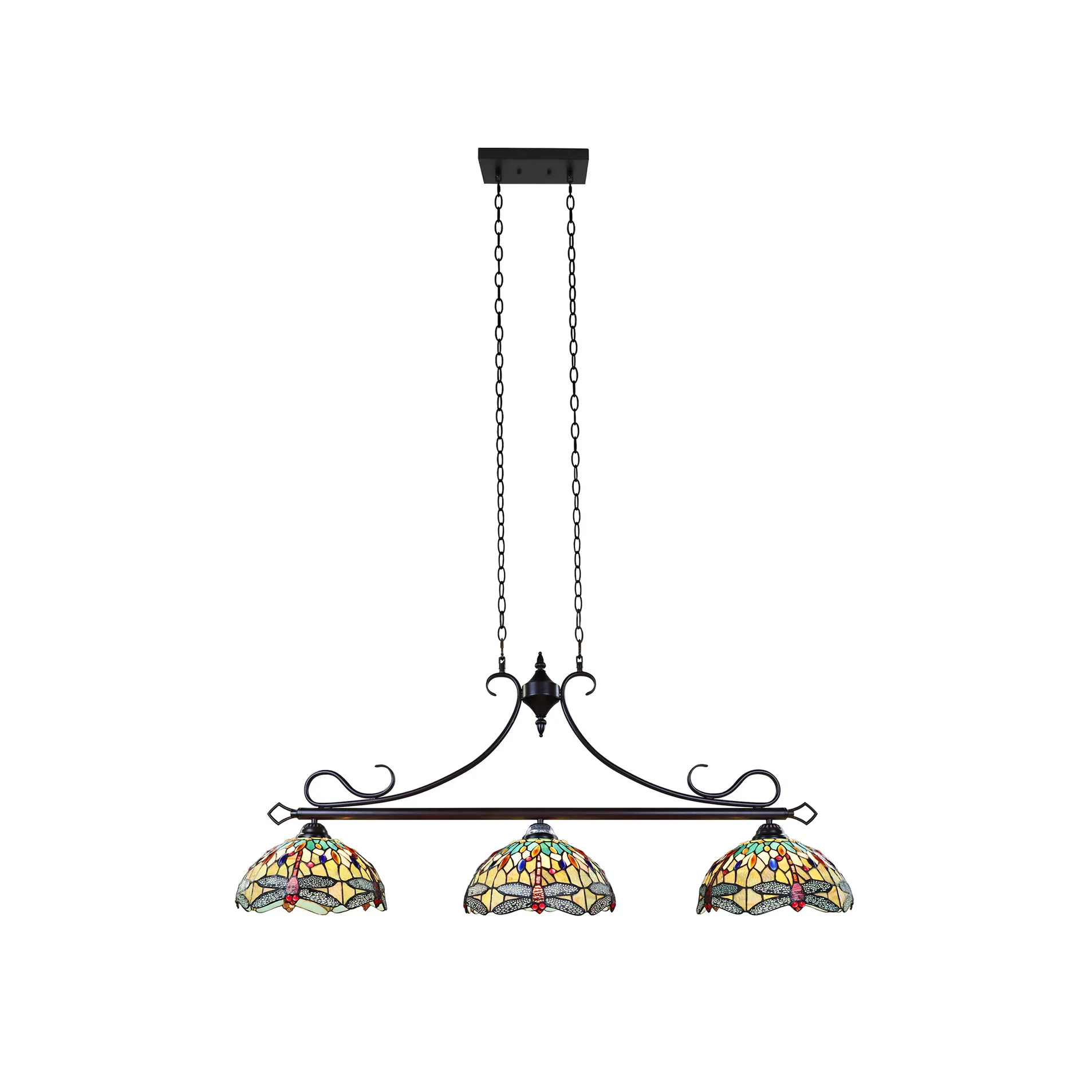 Tiffany Style Dragonfly Design 3-light Linear Island Fixture