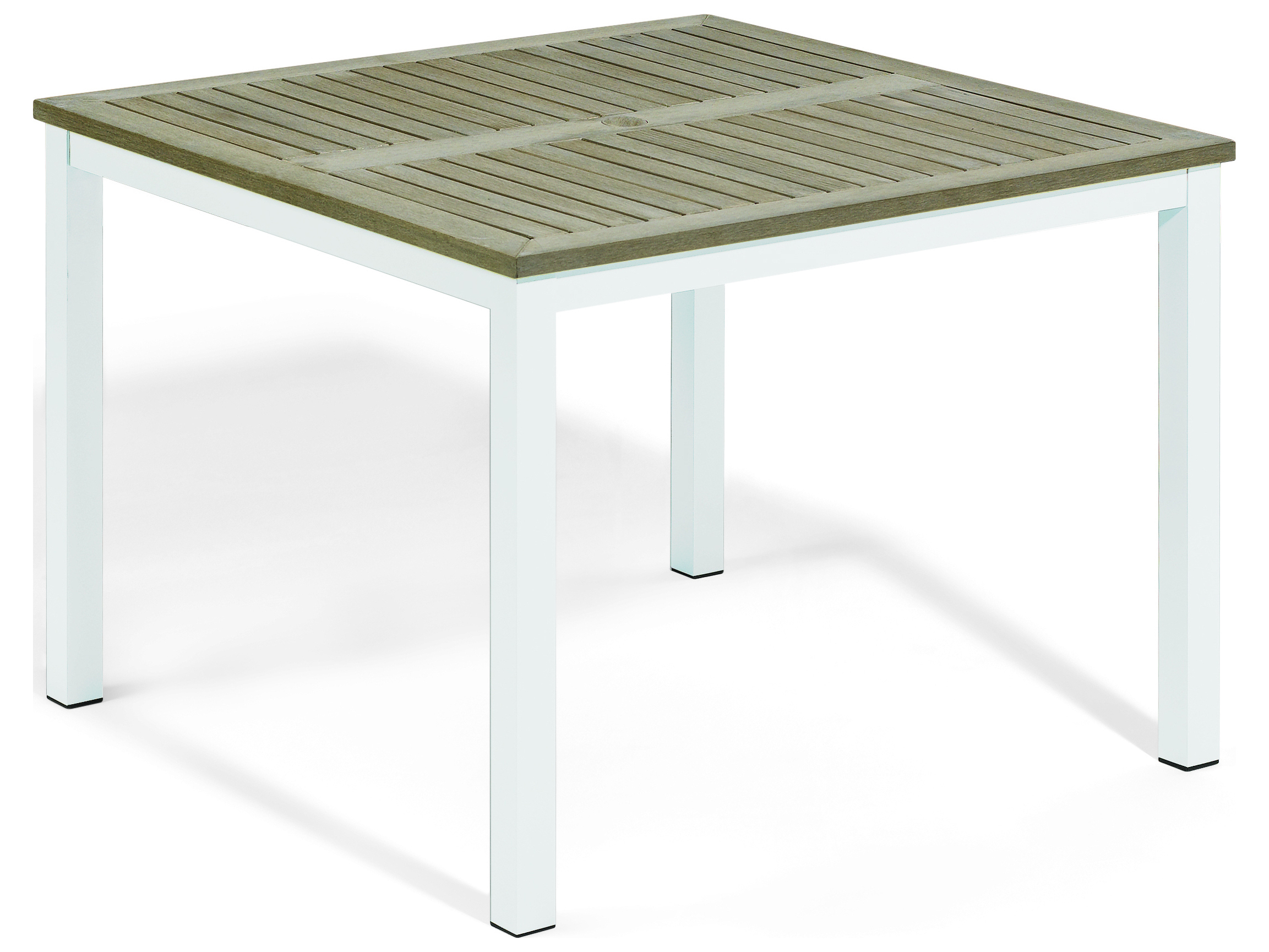 Travira Aluminum Chalk 40'' Square Teakwood Top Dining Table with Umbrella Hole 39'' Square Dining Table