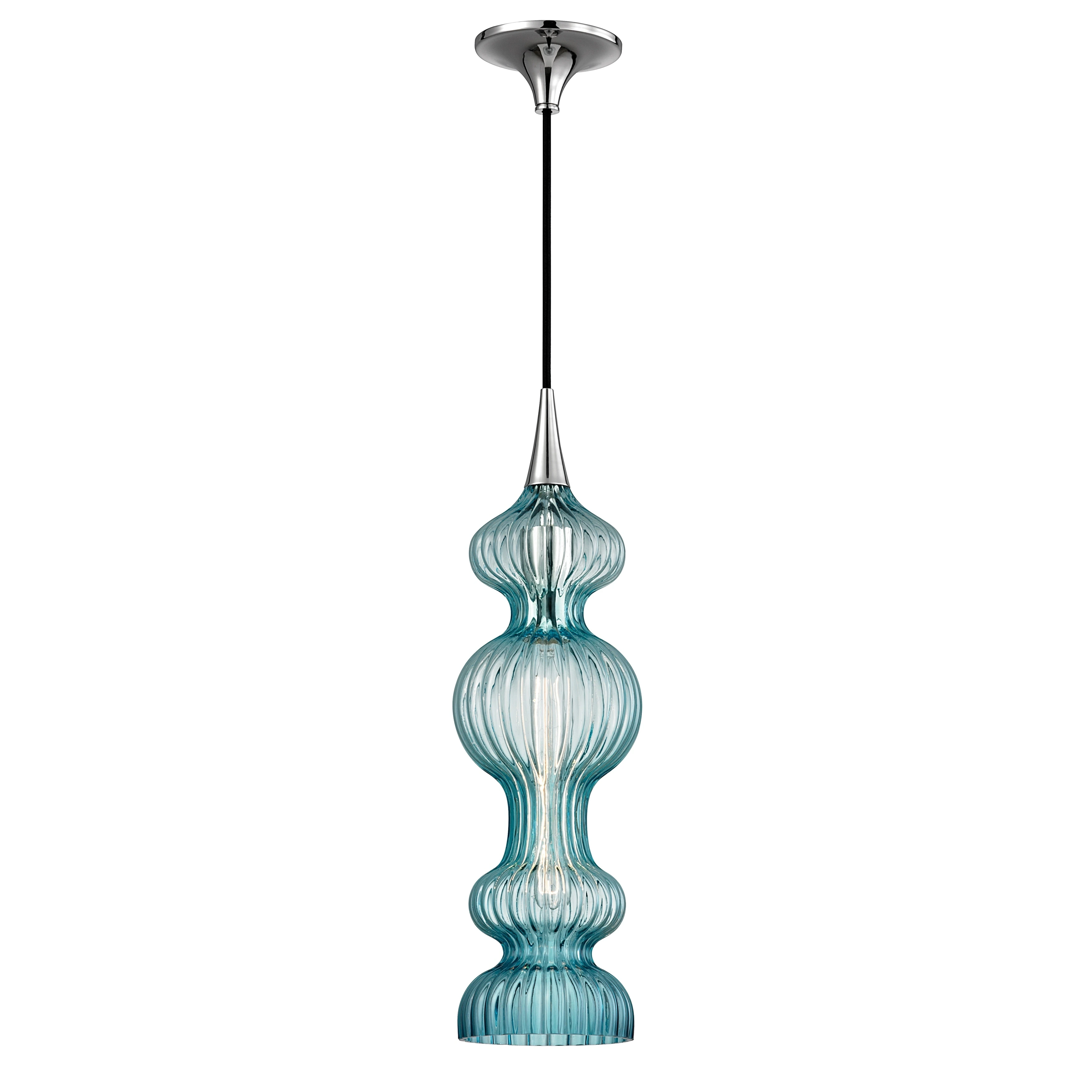Hudson Valley Pomfret Polished Nickel Metal Pendant, Blue Glass