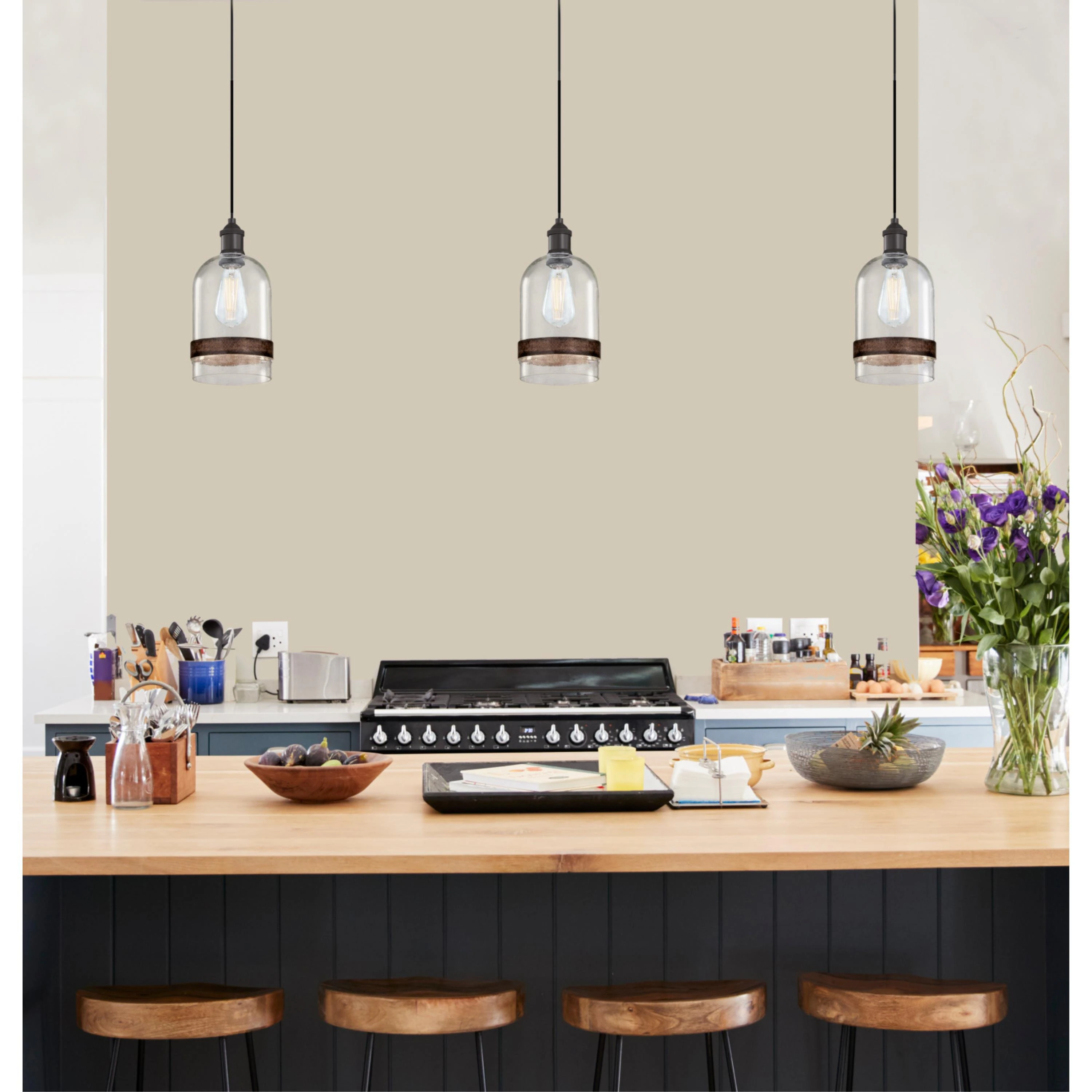 Westinghouse Lighting Tarrant One Light Indoor Mini Pendant, Black-Bronze Finish, Clear Seeded Glass with Barnwood Band