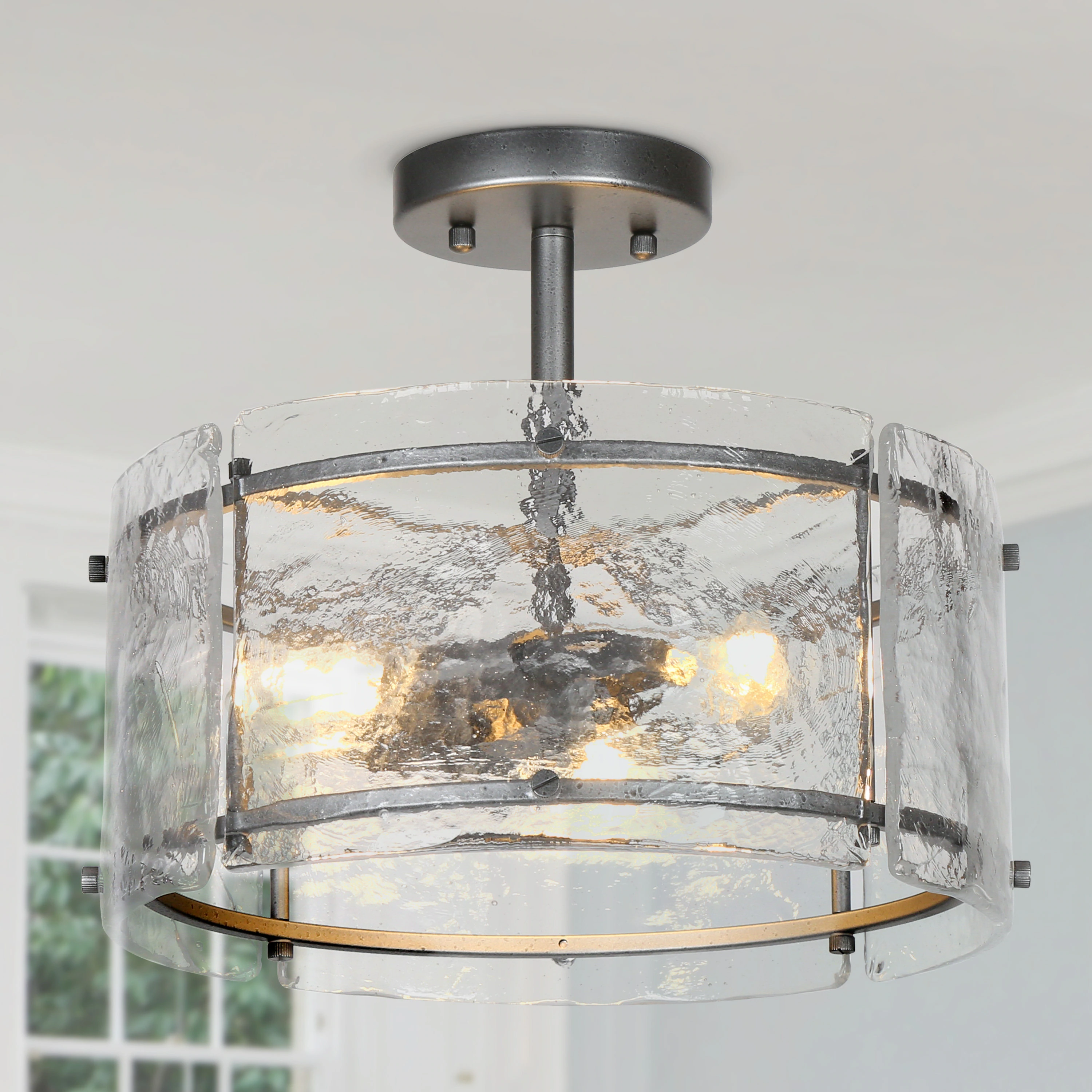 14inch Farmhouse Drum Semi Flush Mount Light Textured Glass LED 3-light for Hallway