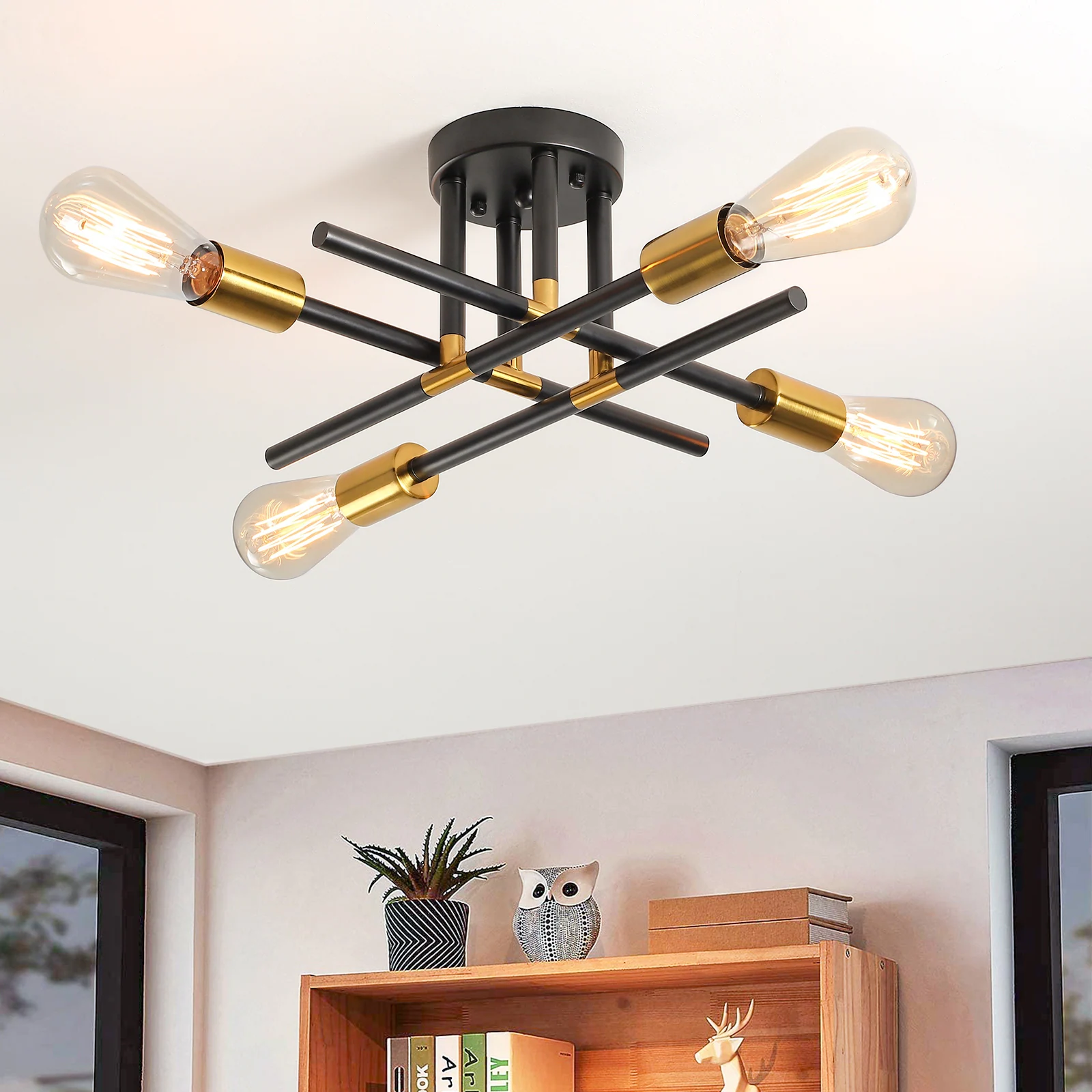 4-Light Modern Semi-Flush Mount Light for Bedroom Study Living Room