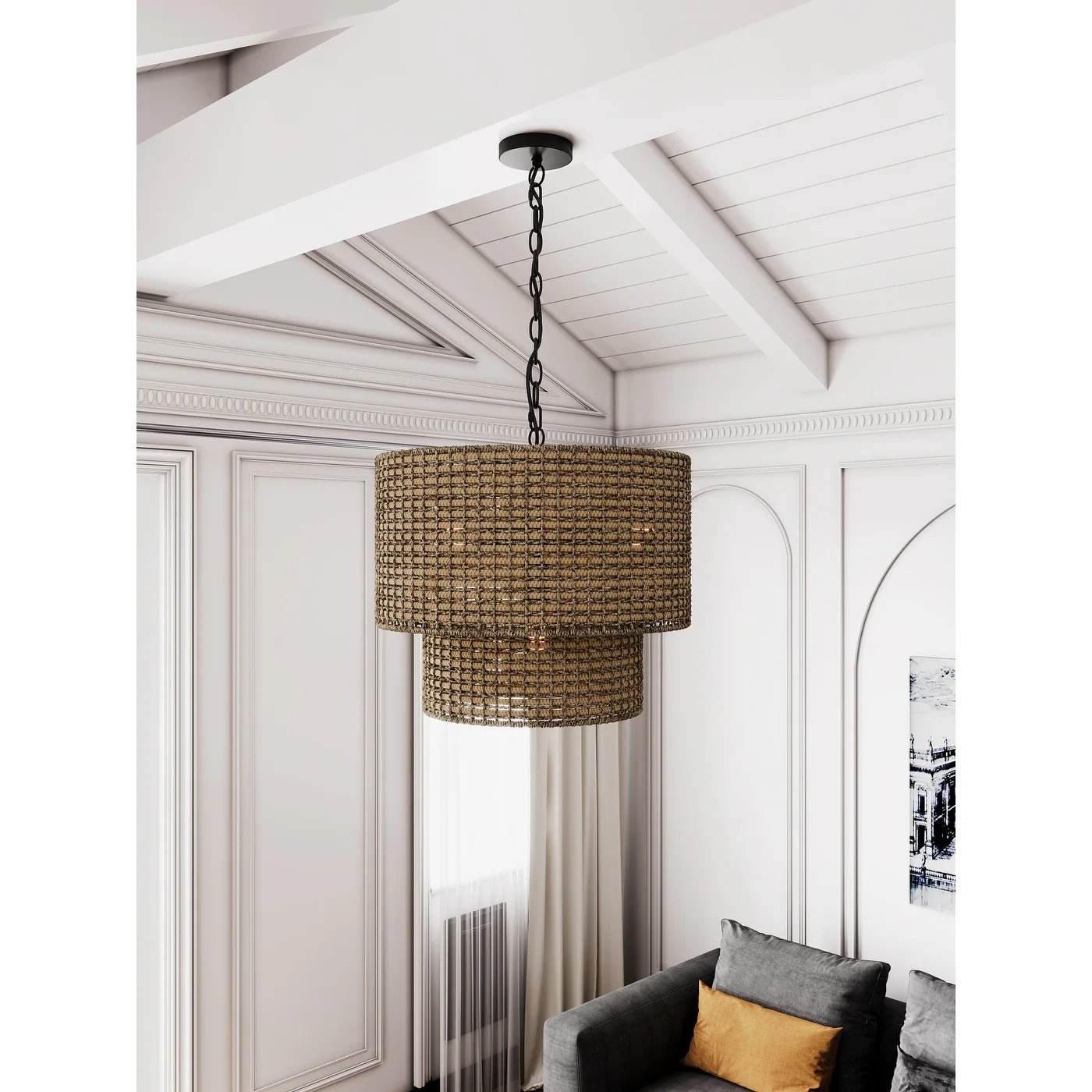 Rustic Farmhouse 4-Light Unique Hand Woven Pendant Light Fixture
