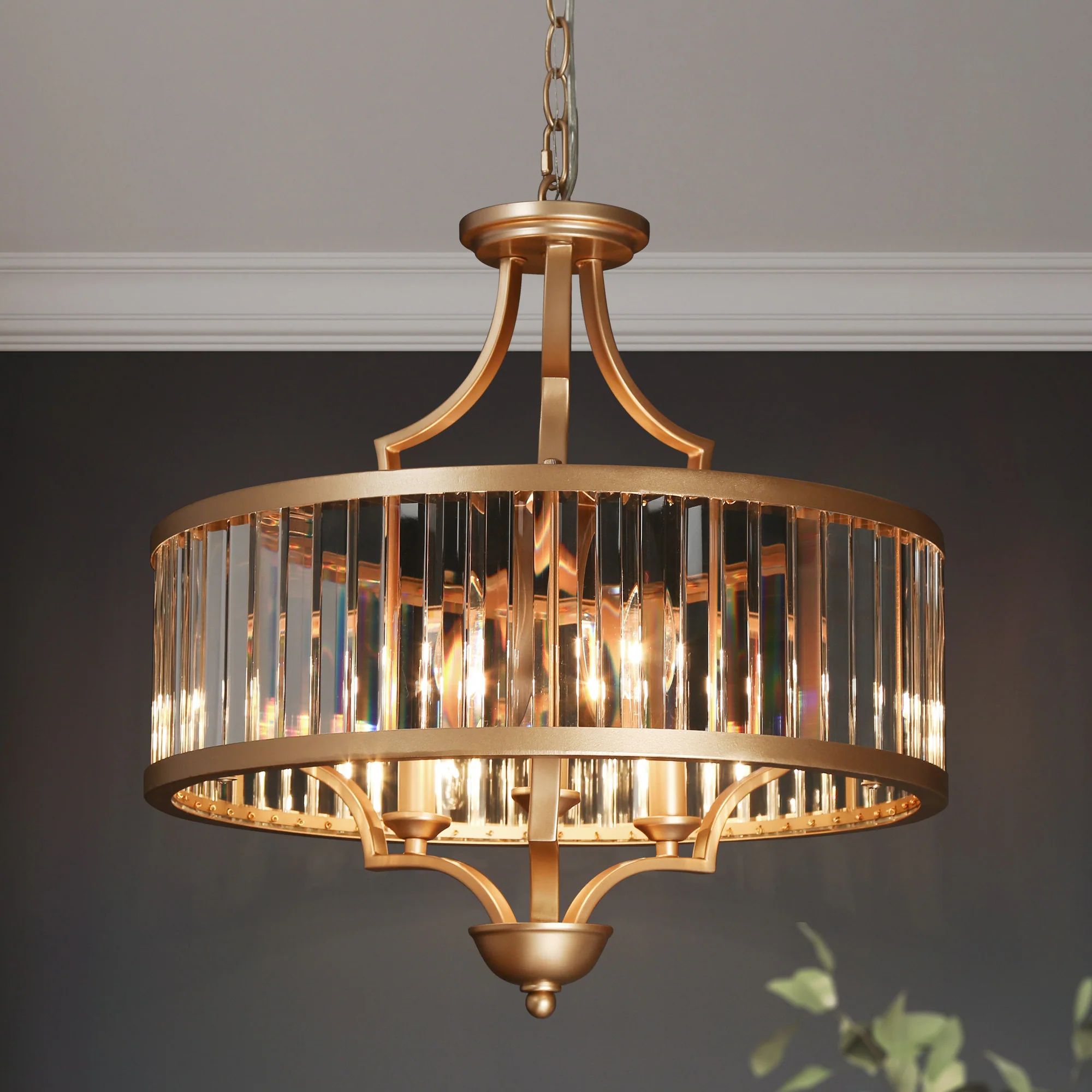 Modern Gold 3-Light Crystal Drum Chandelier Pendant for Dining Room Bedroom