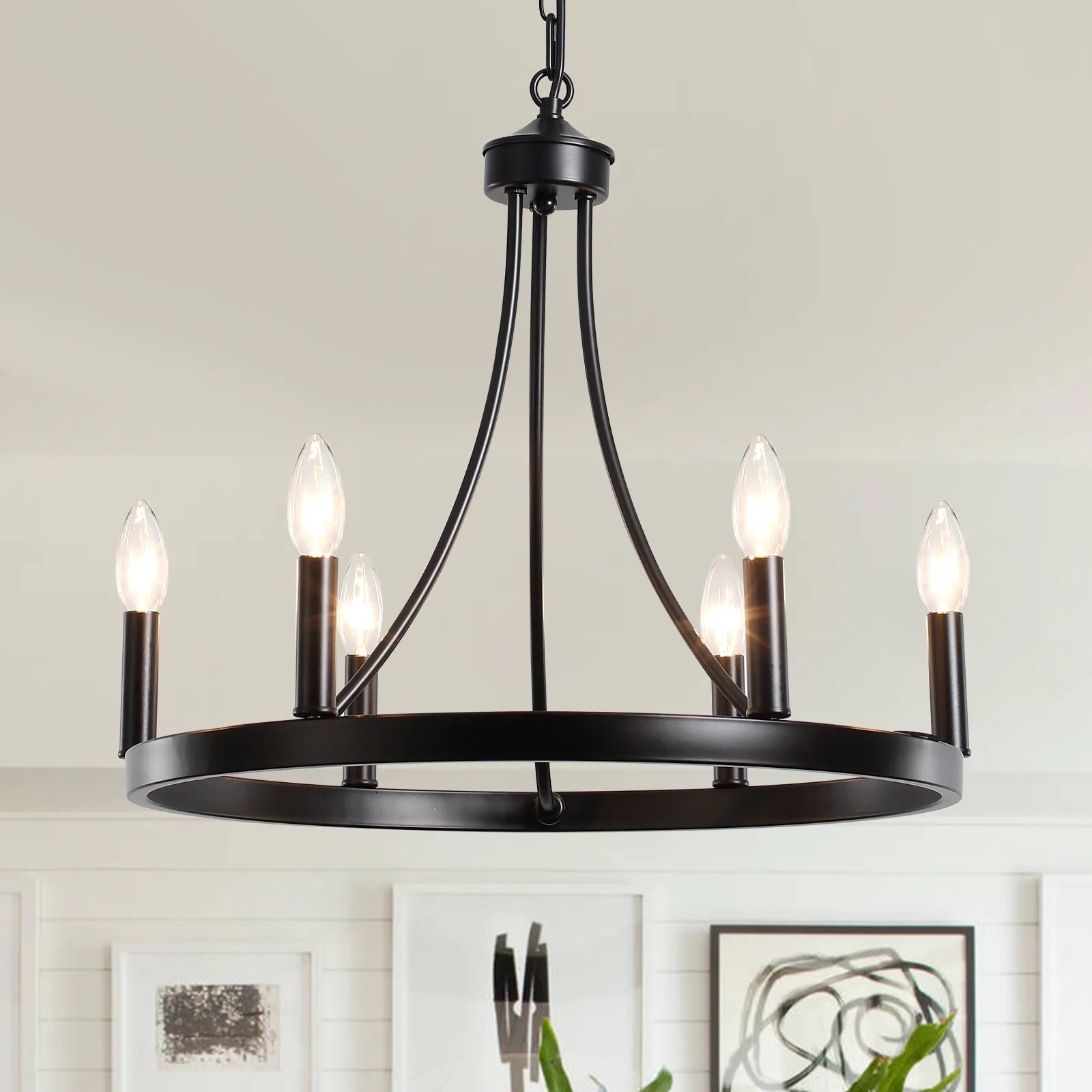 6-Light Farmhouse Dimmable Wagon Wheel Chandelier for Living Room