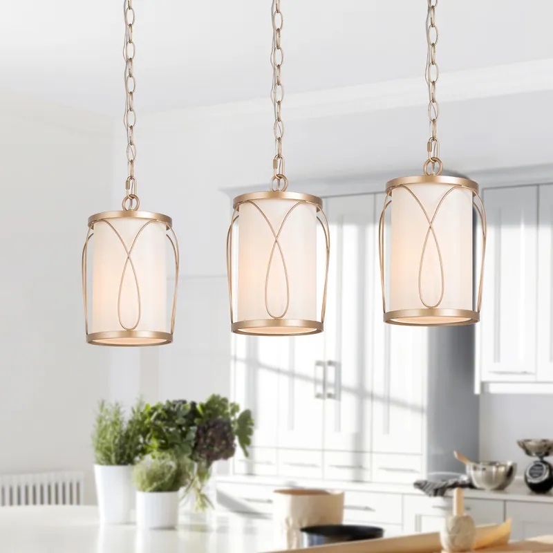 Bella Modern Farmhouse Gold Mini Pendant 1-light Adjustable Light Off-white Fabric Light Fixture