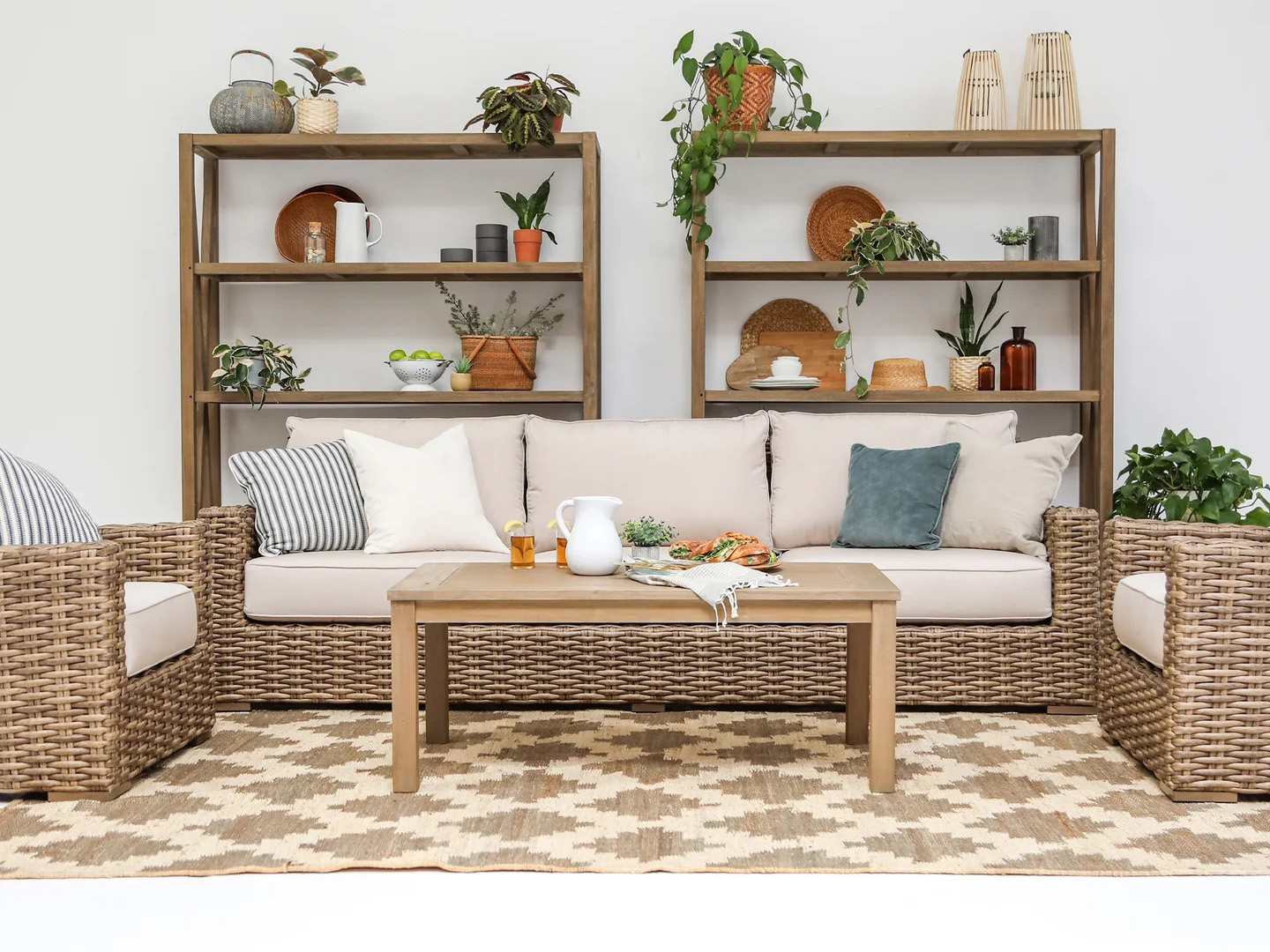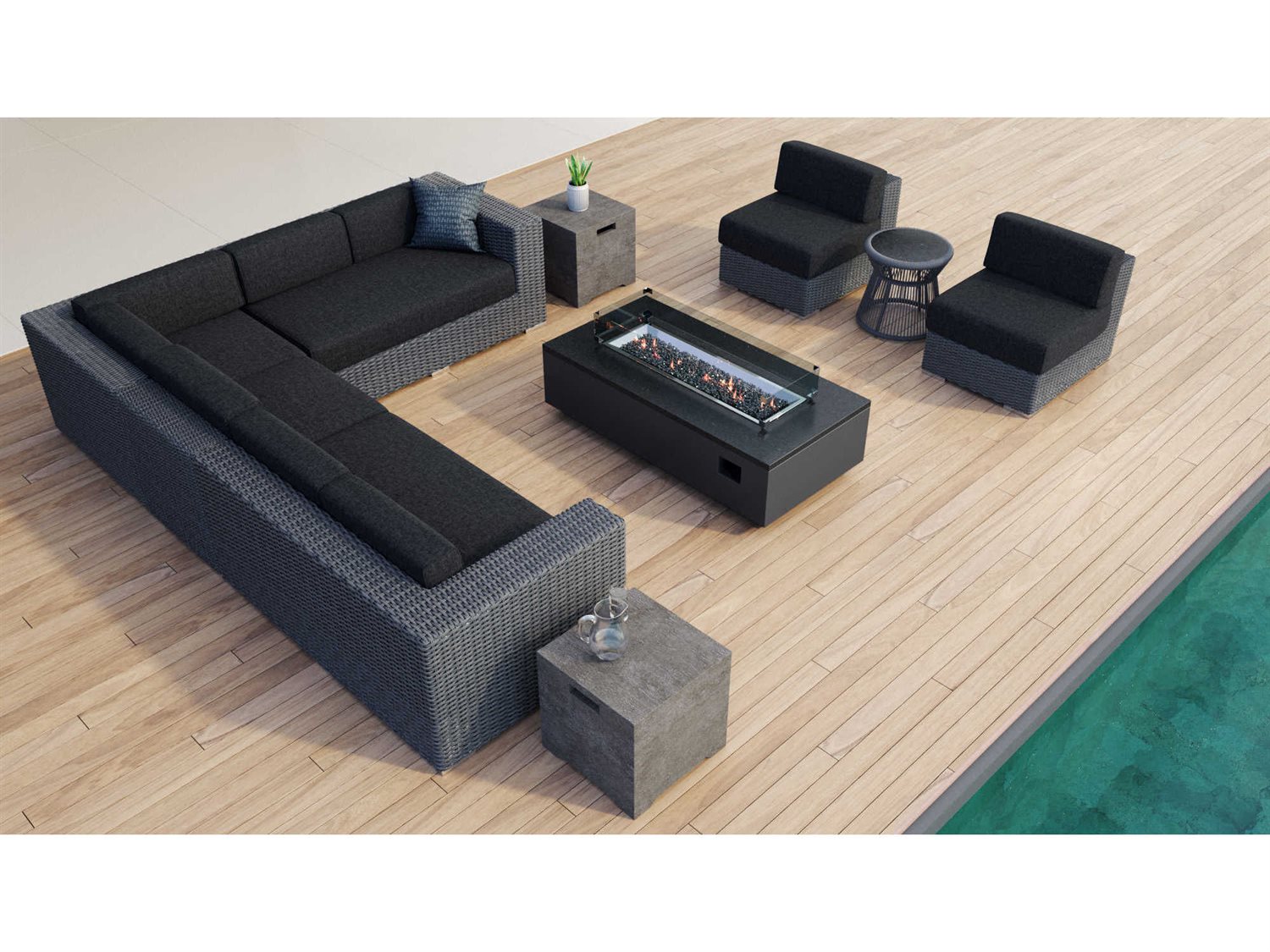 Emerald II Wicker Sectional Firepit Lounge Set in Spectrum Carbon