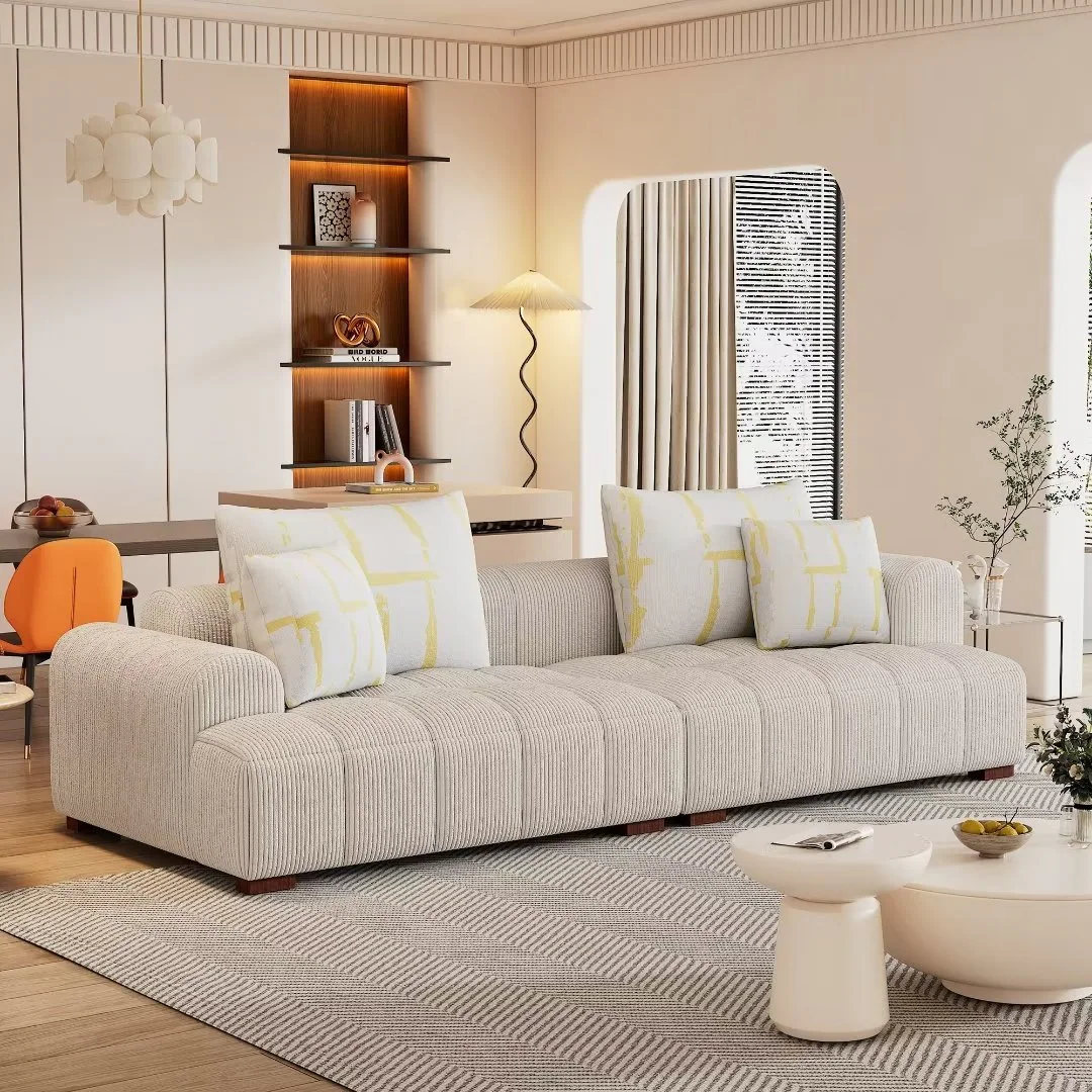 103.9" Modern Couch Corduroy Fabric Comfy Sofa with Rubber Wood Legs