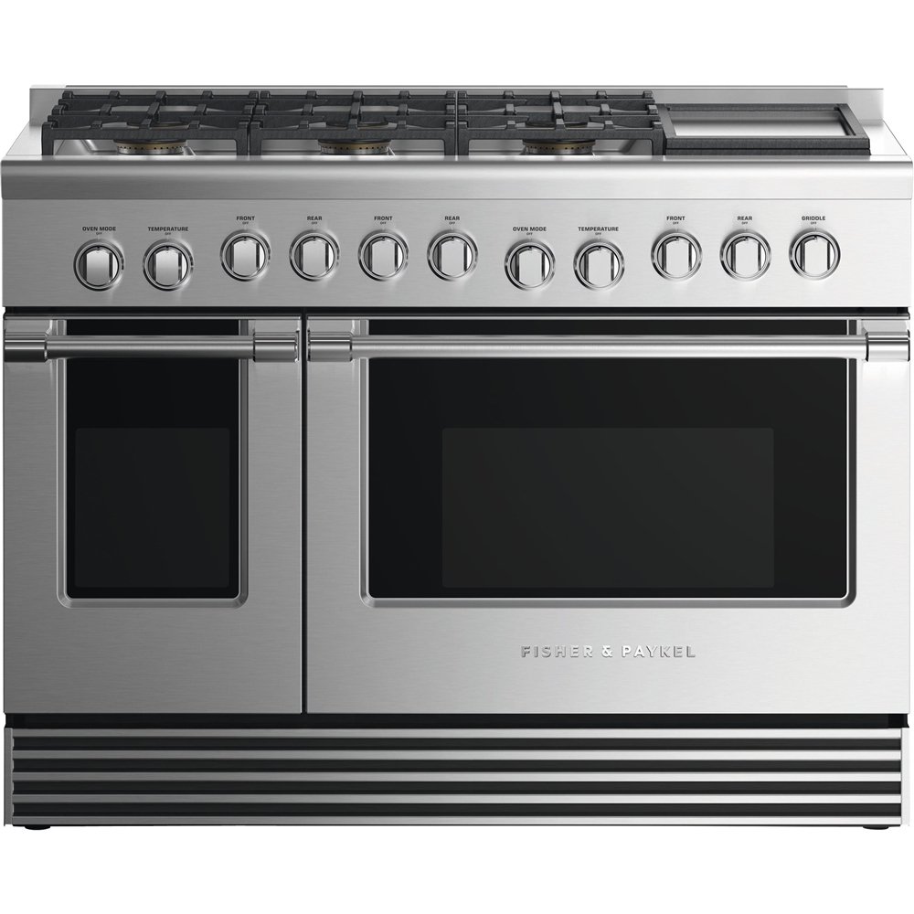 Fisher & Paykel - 6.9 Cu. Ft. Self-Cleaning Freestanding Double Oven Dual Fuel Convection Range - Stainless Steel