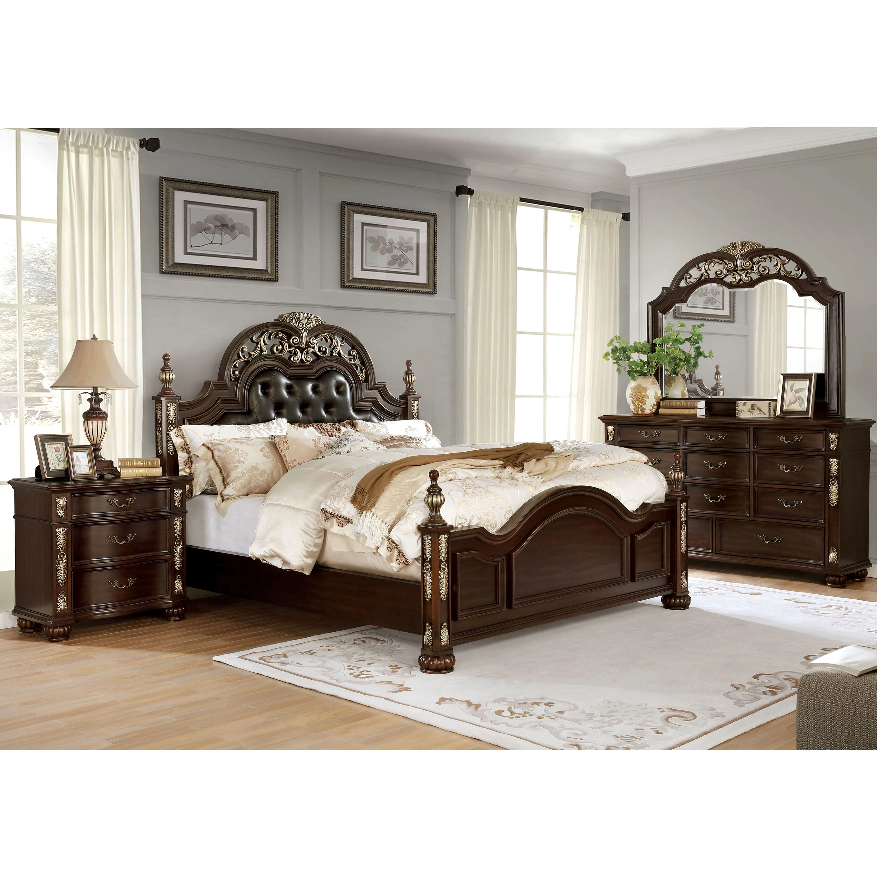 Urex Traditional Cherry Wood 4-Piece Poster Bedroom Set with USB Port by Furniture of America