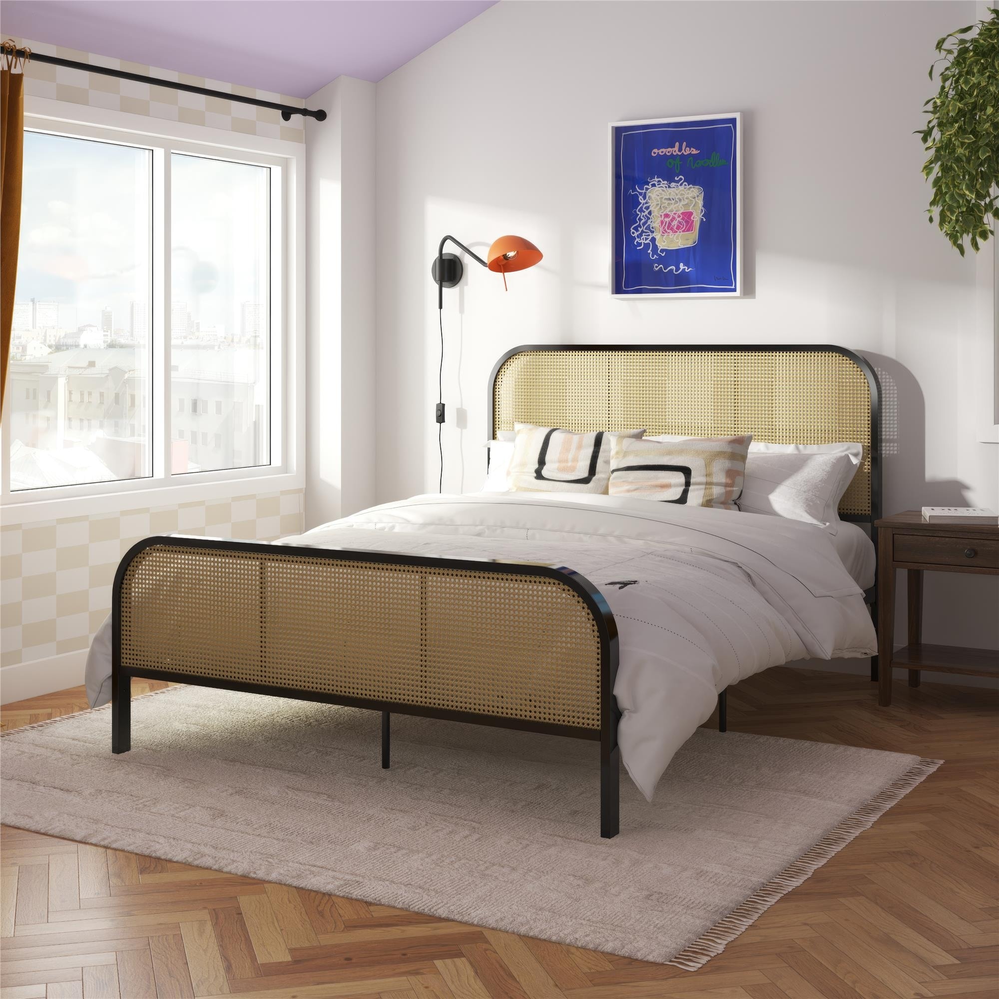 Mr. Kate Roxanne Metal Platform Bed Frame with Cane Headboard
