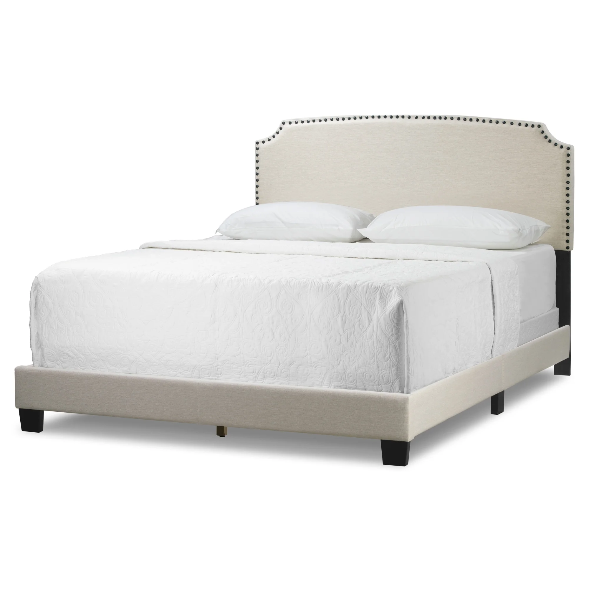Arezo Beige Fabric Queen Bed with Black Nail Head Trim