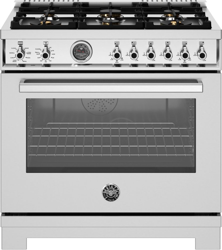 New!Bertazzoni - 36" Professional Series range - Electric self clean oven - 6 brass burners - Stainless Steel