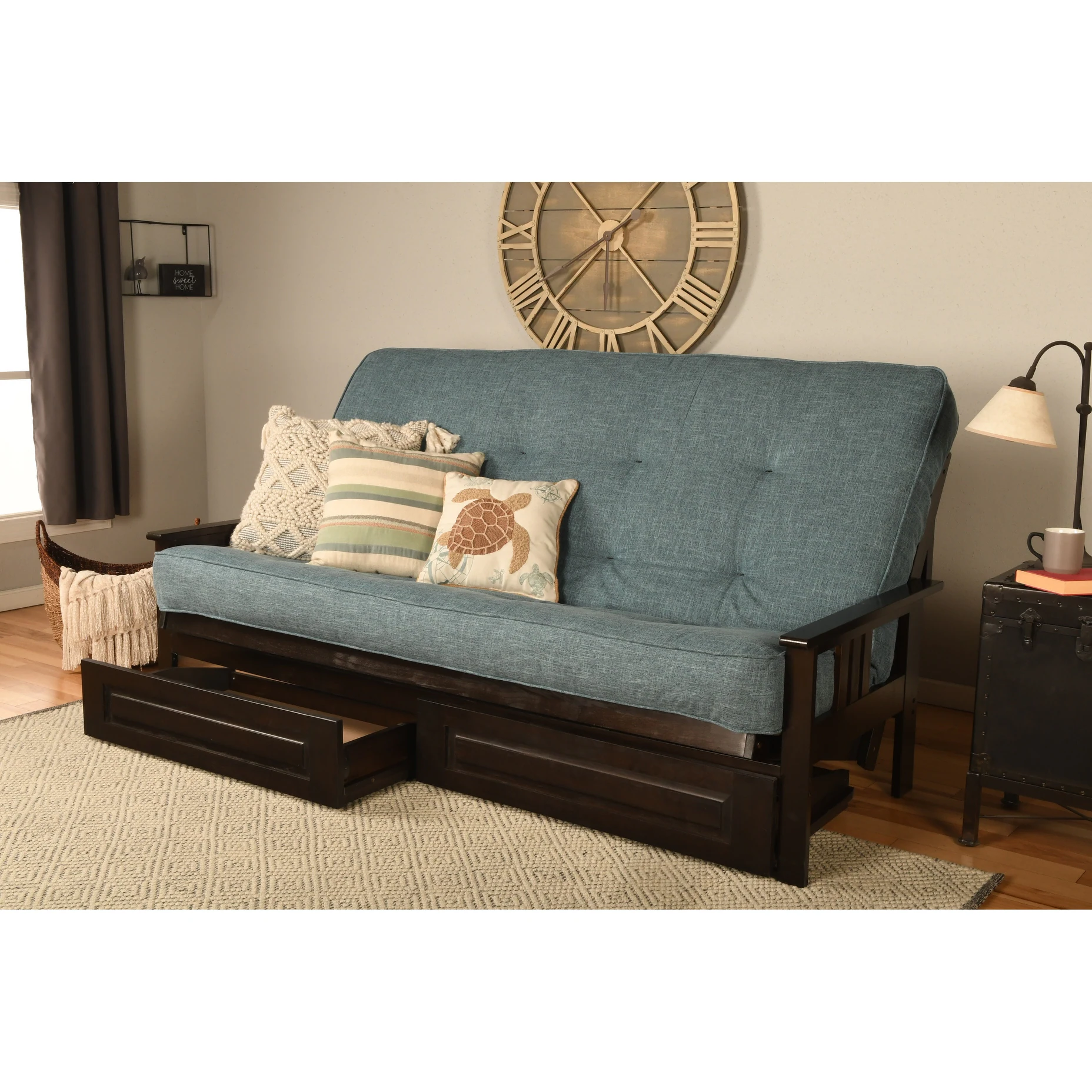 Somette Monterey Queen-size Storage Futon Set in Espresso Finish with Linen Mattress