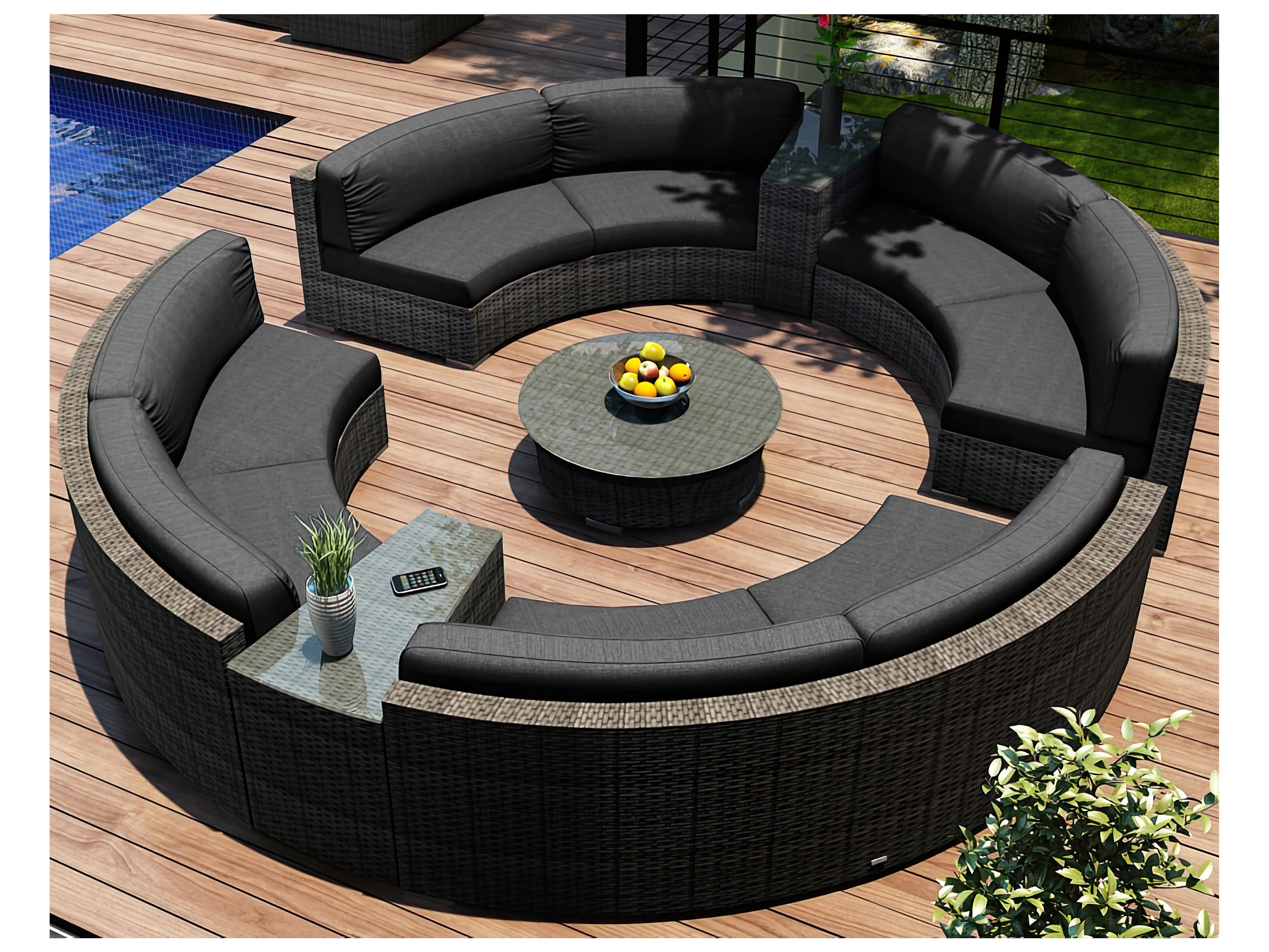District HDPE Wicker Textured Slate 7 Piece Curve Sectional Lounge Set